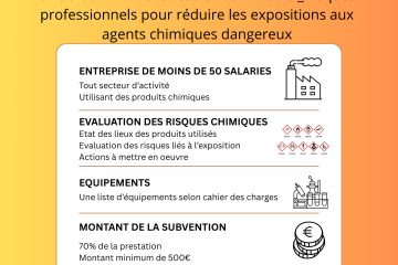 Vous le savez, je suis formatrice risque chimique certifiée par l’INRS. C’est en ce sens, où l’aide financière intervient : l’accompagnement pour l’évaluation des risques chimiques est pris en charge à 70%. Besoin d’un équipement pour réduire l’exposition des risques chimiques ? Cette subvention peut aussi vous aider. N’hésitez pas Lire la suite